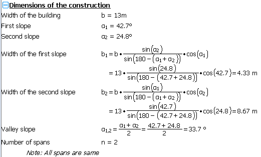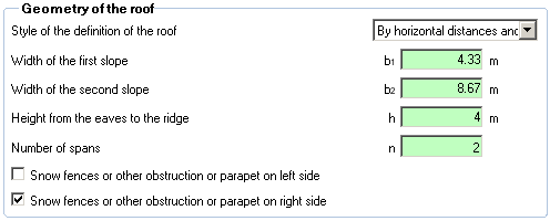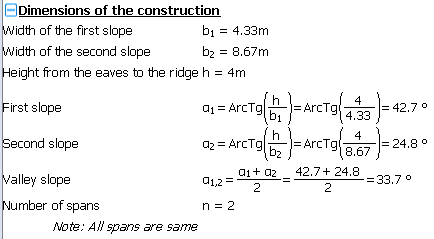 "Number of spans" is used for definituon the number of span on the roof. The value is used in the calculation "Load at unit lenght of the roof".