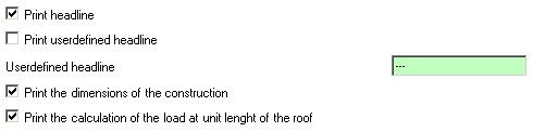 Checkbox "Print the calculation of the load at unit lenght of the roof" show/hide calculation of the Load at unit length in the direction of roof